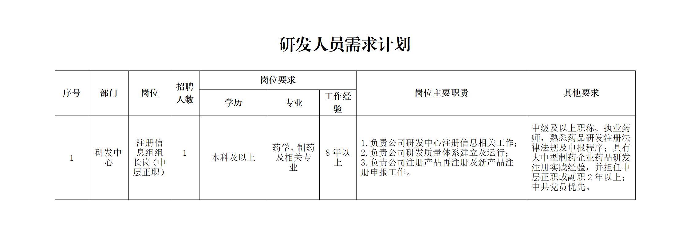 甘肅普安制藥股份有限公司 關于公開招聘研發人員的公告