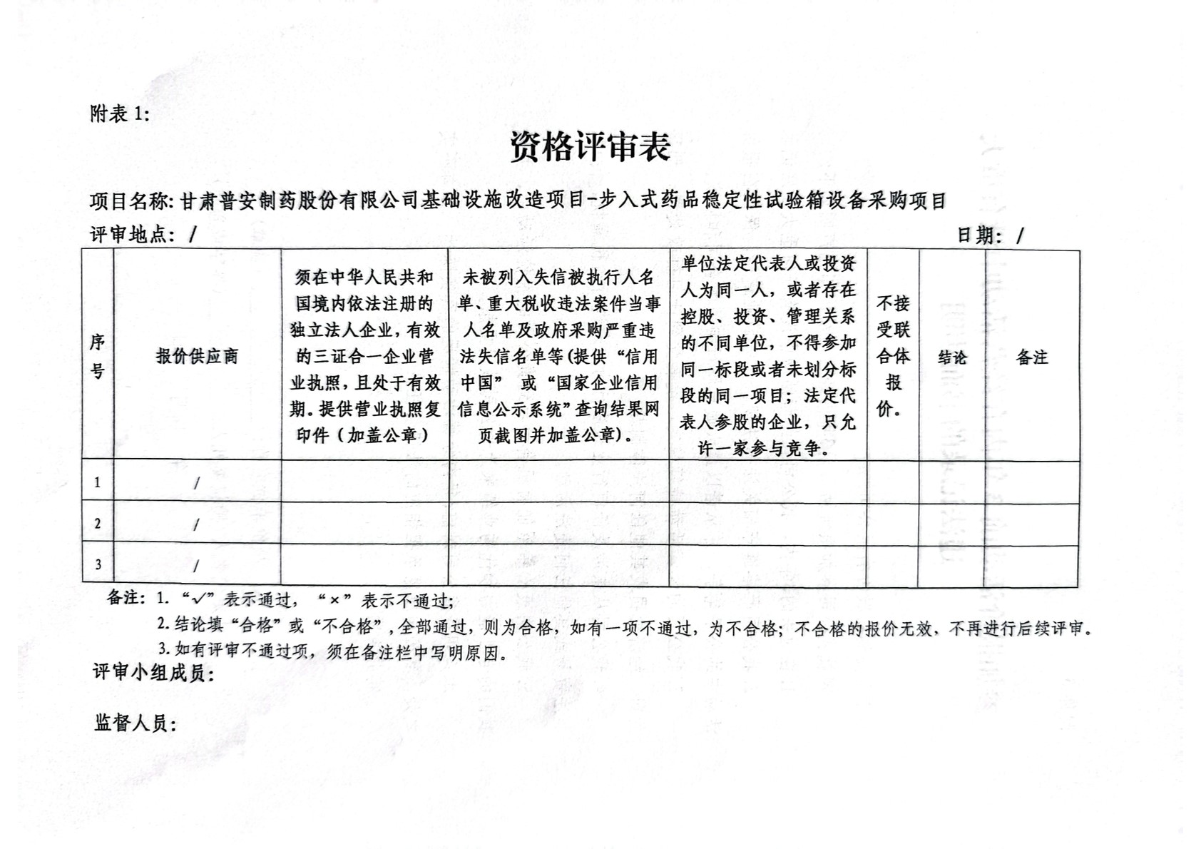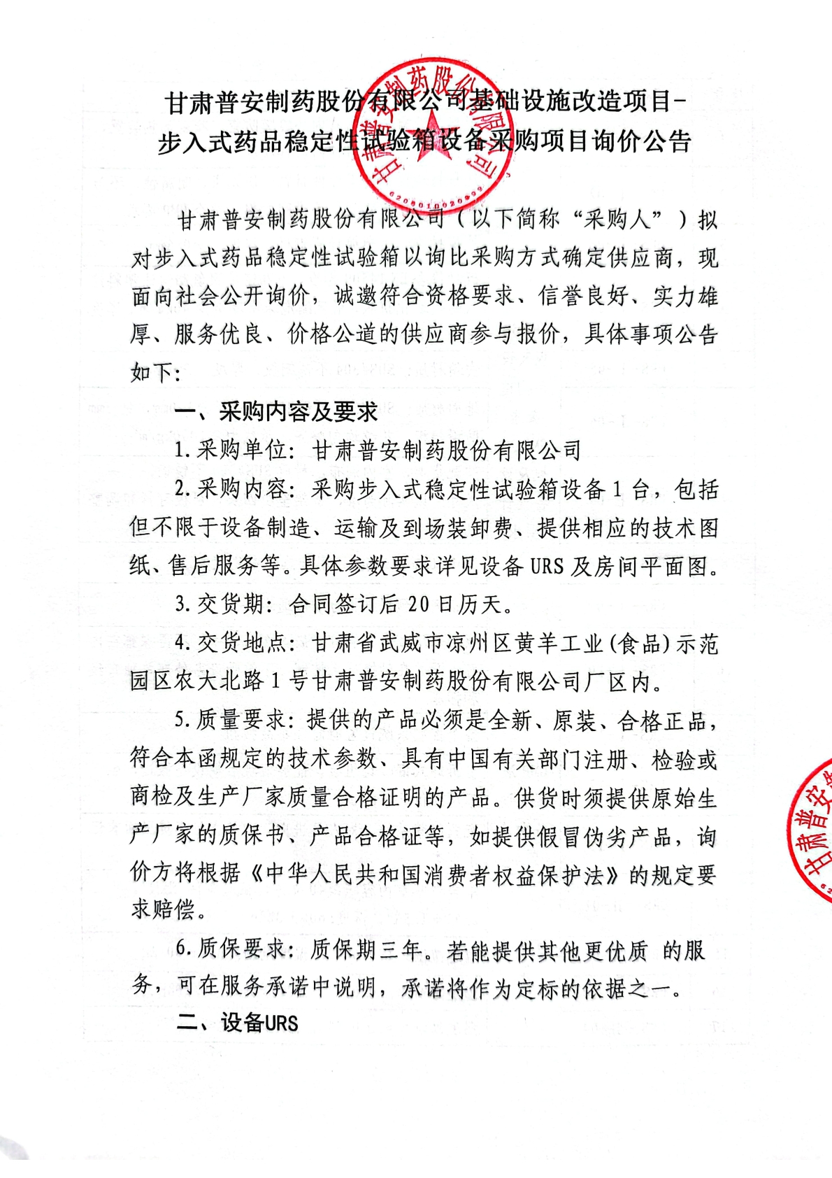 步入式藥品穩定性試驗箱設備采購項目詢價公告